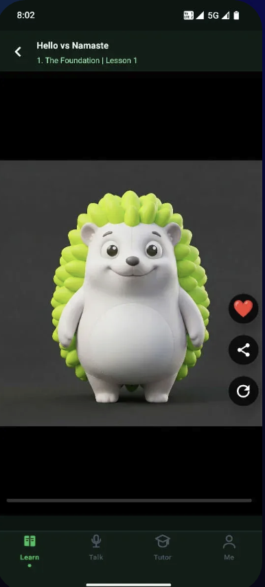 A video friend who speaks Hindi and helps kids practice English. Live conversation, anytime